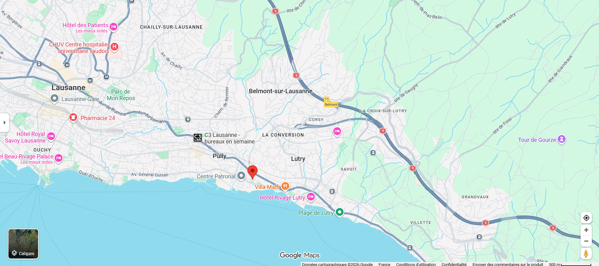 Cabinet situé au bord du lac Léman, près de Lausanne, facilement accessible.